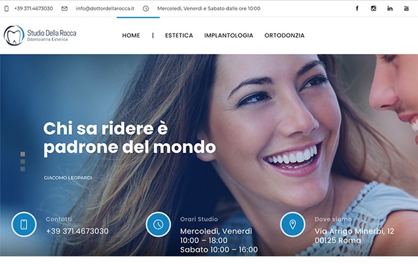 FreelanceIl Dottor Della Rocca non aveva il sito. Siamo partiti con un monopagina, giusto per esserci, poi ha deciso di inserire i casi clinici, poi abbiamo aperto un canale Youtube in cui stiamo pubblicando le interviste dei suoi pazienti su una tecnica non invasiva per rimettere i denti. Campagna ADV su facebook per spingere la nuova tecnica... non so cosa faremo a breve, ma vi aggiornerò!